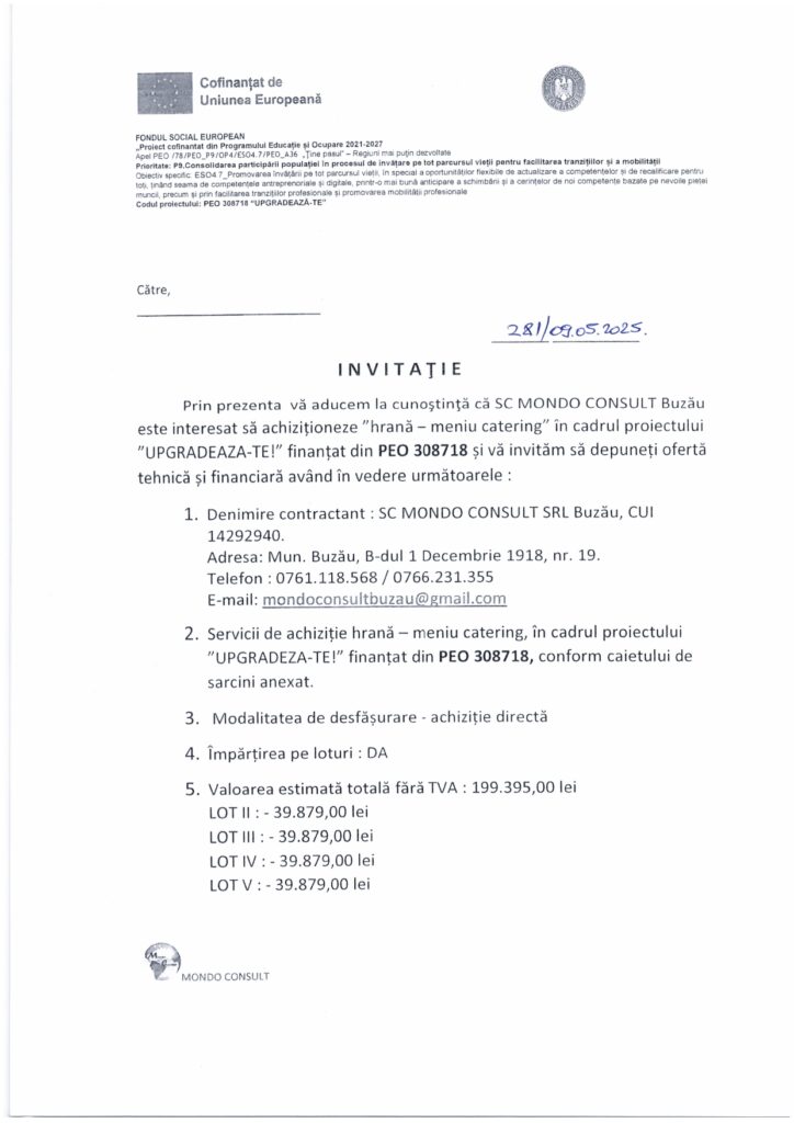 INVITATIE DE PARTICIPARE HRANA 729 26.02.2026
